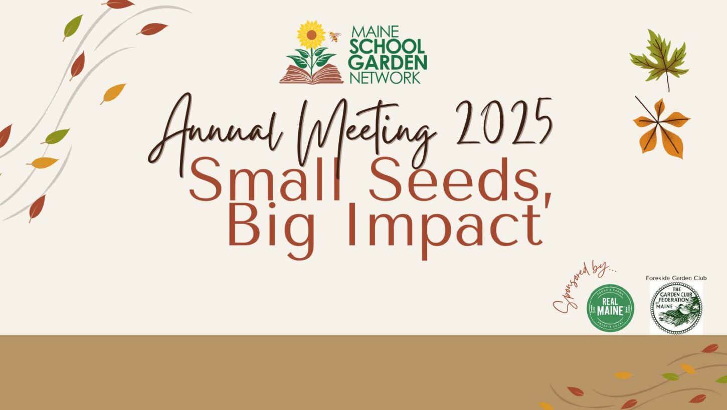 Be our guest for an afternoon and evening as we wrap up 2025! Take part in engaging workshops (2.5 contact hours), connect with the school garden community over a shared potluck meal, and hear highlights from the year in our annual report. All guests will leave with a bag of Coast of Maine Organic Products Compost and a MSGN 2026 School Garden Calendar, along with chances to win even more great door prizes!