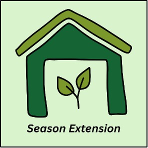 Season extension options include: Plastic Mulches, Row Covers, Hot Caps, Cold Frames, Hoop Houses, Greenhouses as well as growing Indoors using Grow Towers and Aquaponics.