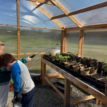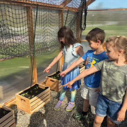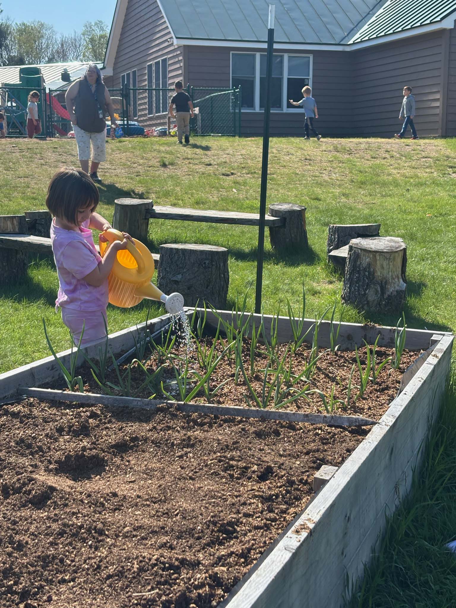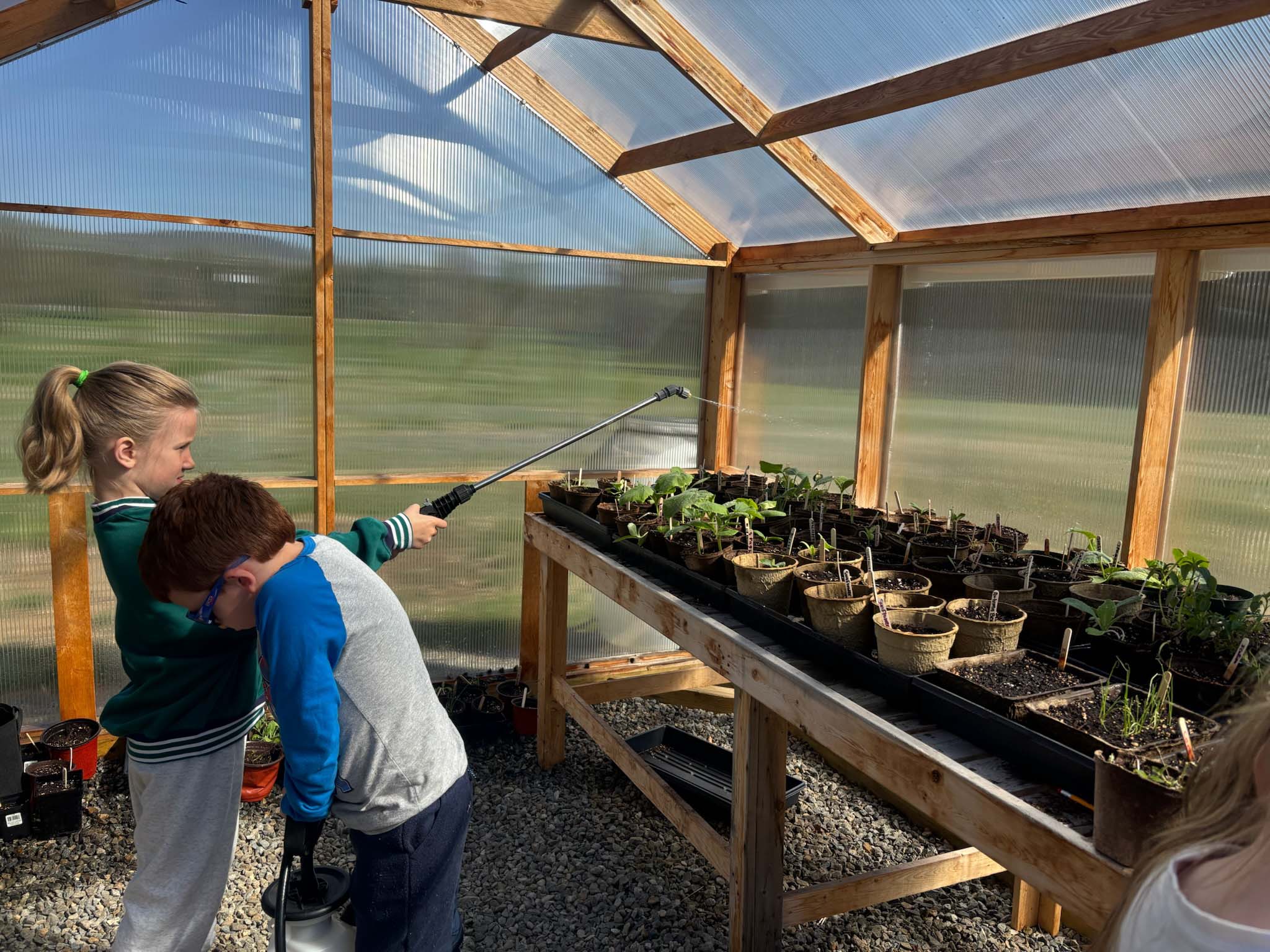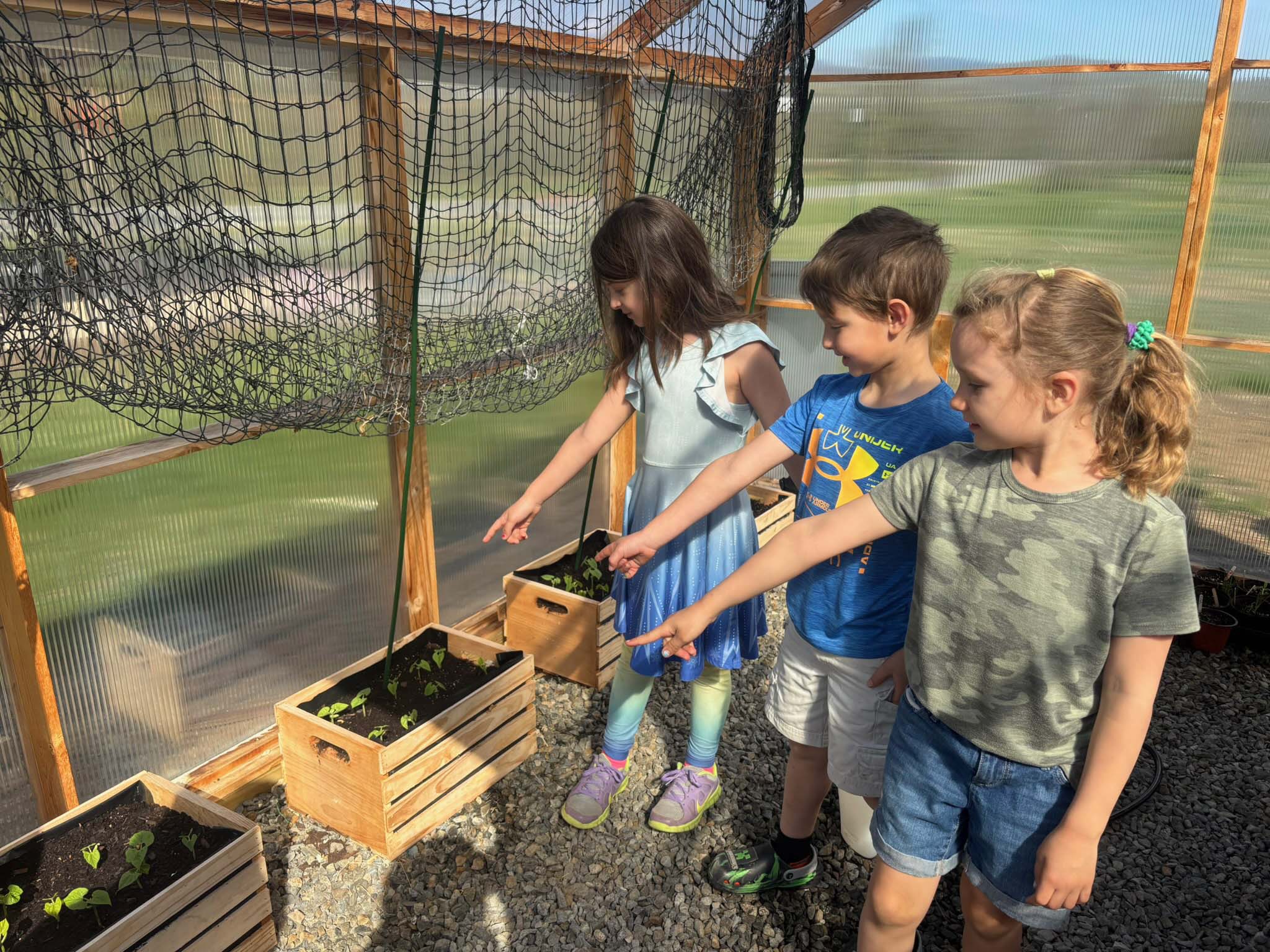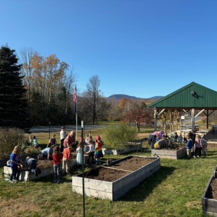 Kingfield’s Garden Classroom includes eight large raised beds, a meeting space with stump seating and an outdoor chalkboard teaching area, benches and picnic tables for workspaces, a large pavilion for cooking and group activities, a composting program, and a newly added greenhouse. This outdoor learning space allows students to explore food systems, ecology and nutrition in a meaningful and engaging way.
